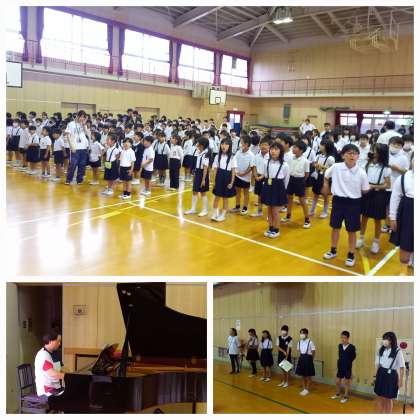 体育館に打ち付ける雨音を消し去るような明るい声で、校歌を歌って始まった朝会