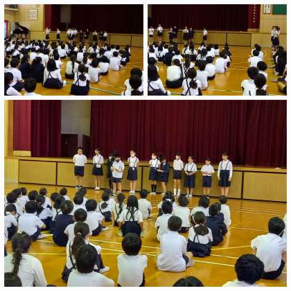 先日の「うりひがまつり」のがんばりを称えるとともに、今回身につけた力を日々の学校生活に生かせるようにしましょうと話しました。