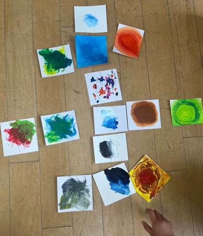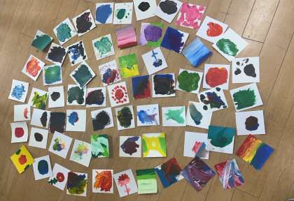 小さな紙の上で絵の具をゆっくり混ぜてみよう