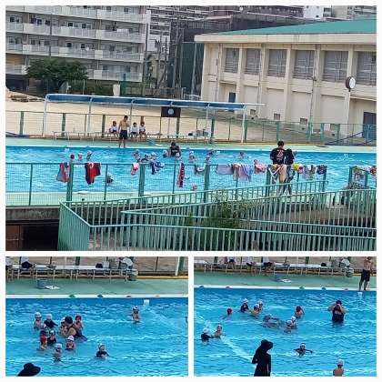 小学校のプールに慣れ、すっかり水と友だちになっている1年生です。