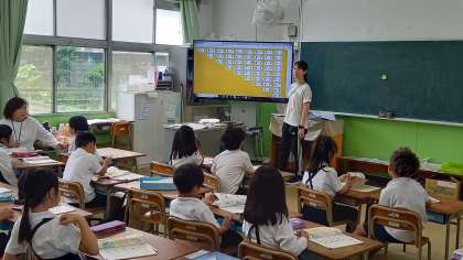 計算カードが並んだものを見て、気づいたことを発表しています。