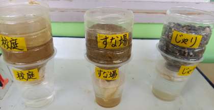 雨が降り、運動場や中庭で「地面を流れる水」を観察することができた子どもたち。