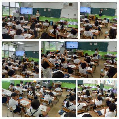 子どもたちは、実際に演じるなどして動物がどのようにして身を守っているのかを考えています。