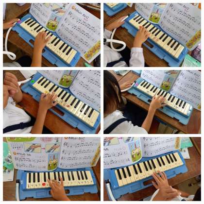 鍵盤ハーモニカで、指くぐりの練習に繰り返し取り組んでいます。