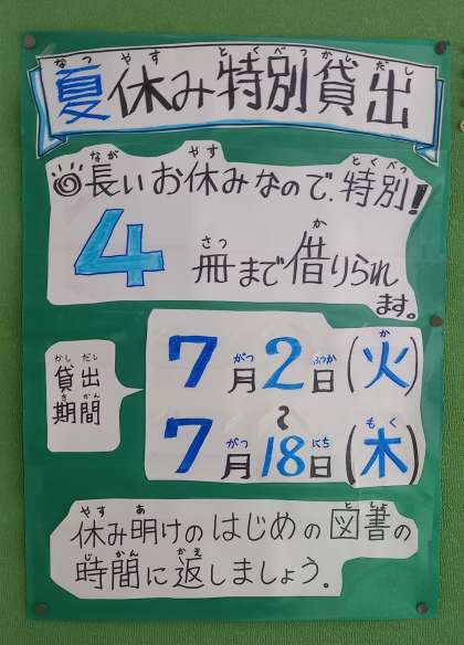 今日から夏休み特別企画として、1人4冊貸出可能になっています。