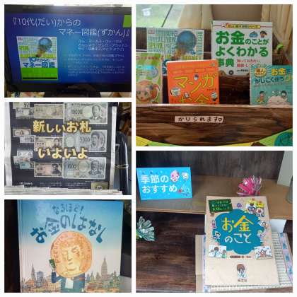 うりひがほんのもりでは、新札発行を記念して「お金」に関する本が紹介されています。