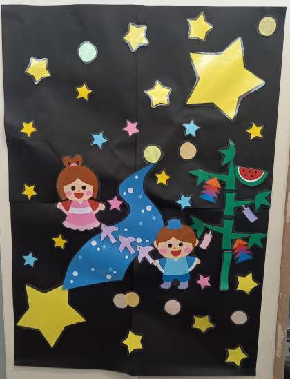 給食室の掲示物が、七夕になっています。