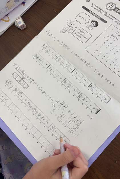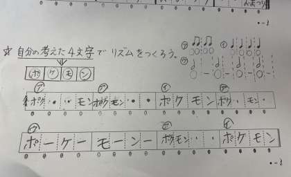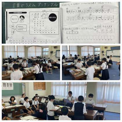 音楽科で4年生が『言葉でリズムアンサンブル』に楽しく取り組みました。