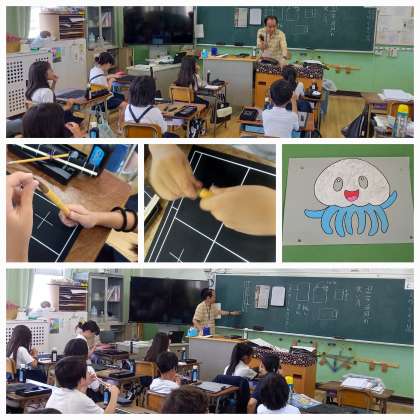 3年生から始まる『毛筆』学習に向け、道具の名前や扱い方、学習のルールなどを確認しています。