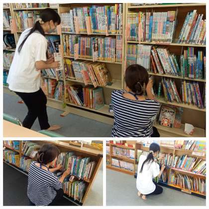 図書ボランティアさんには、絵本の読み聞かせをしてくださる方以外にも、図書室の整備に関わってくださっている方もおられます。