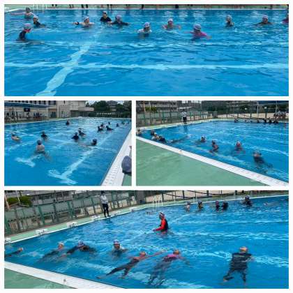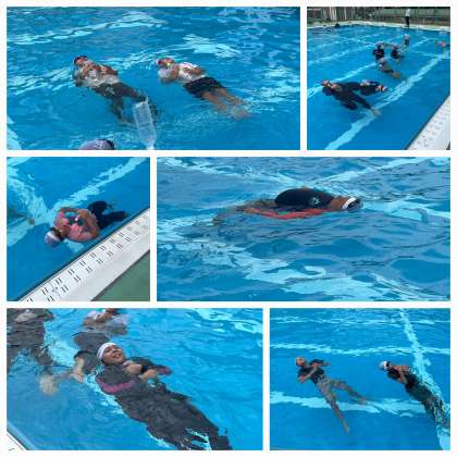 そのなかで、もし着衣のまま水に落ちたときに安全に対処できるように「着衣での水泳指導」を行いました。