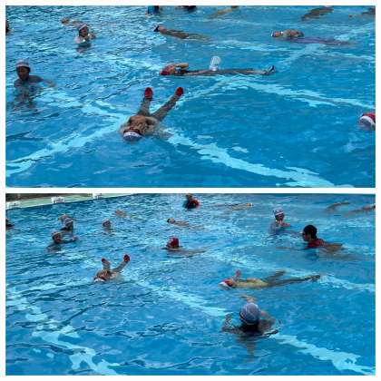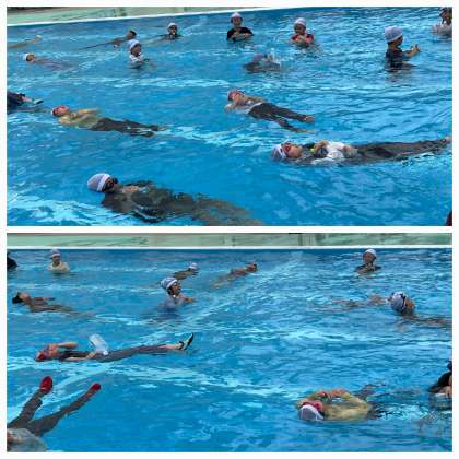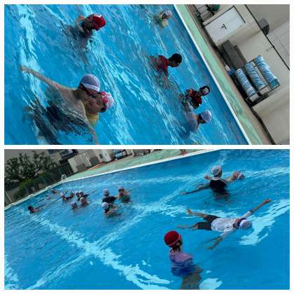 夏真っ盛り、海や川などに行くことが増えると思います。そのなかで、もし着衣のまま水に落ちたときに安全に対処できるように「着衣での水泳指導」を行いました。