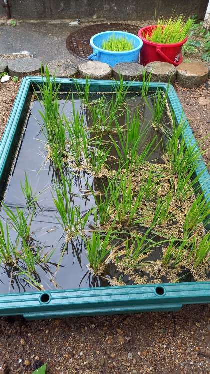 5年生がJA(農業協同組合)からいただいた稲が、青々と育っています。