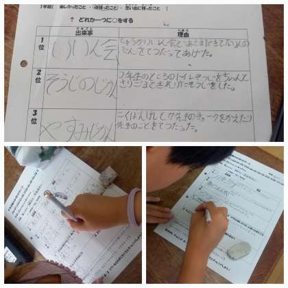 1学期の学校生活を振り返り、楽しかったこと・がんばったこと・思い出に残ったことを書いています。