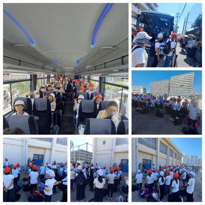 晴天の中、大阪市立信太山青少年野外活動センターへ林間学習に行きます。