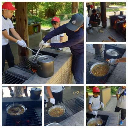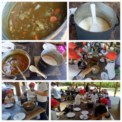 みんなでおこした「火」を使って、おいしいカレーを作りました。