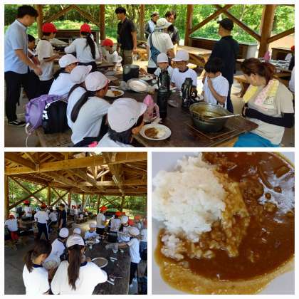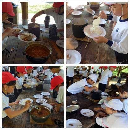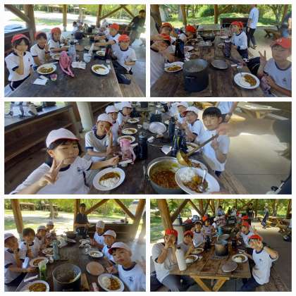 みんなでおこした「火」を使って、おいしいカレーを作りました。