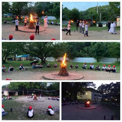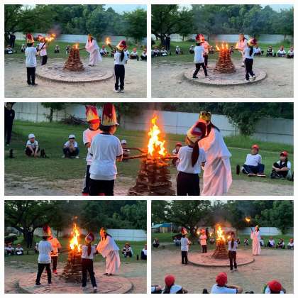火の神と火の神の子ども達による点火で「キャンプファイヤー」始まりました。