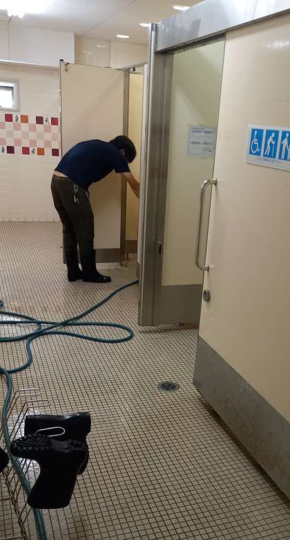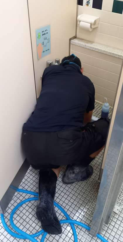 子どもたちが気持ちよく使えるよう、業者によるトイレ清掃を行っています。