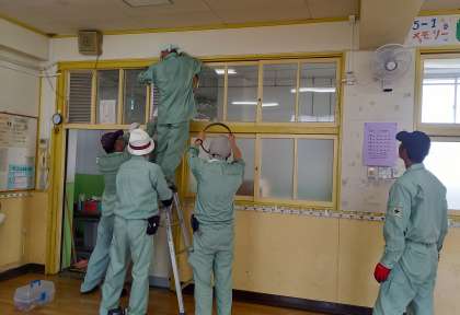 本校の管理作業員と近隣の管理作業員が協力して、校内の環境整備に努めています。