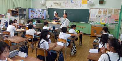 子どもたちは、楽しみながら英語表現に親しんでいます。