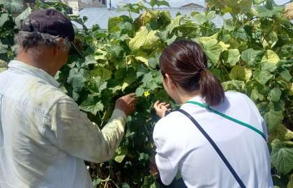 ウリ科(カボチャ・メロン・ゴーヤなど)の植物の花についてや、なにわ伝統野菜(毛馬きゅうり・勝間なんきん・田辺大根など)を育てるうえでの工夫など、貴重なお話を聞かせていただきました。