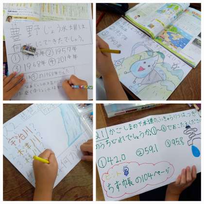 学習したことをクイズにしています。 よく見ると、ヒントも書いています。