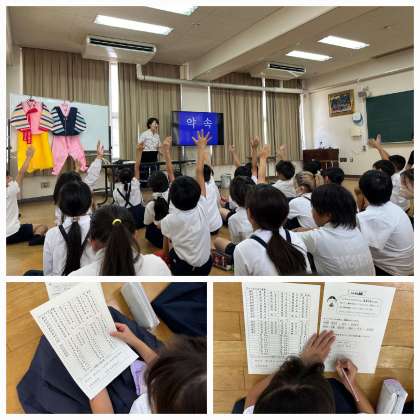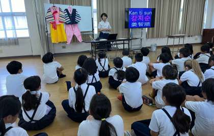 ハングルについて似ている言葉をクイズで当てたり、ハングル文字で名前を書いたり、文を解読したり、楽しく学習していました。