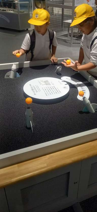 ボールが転がる、鏡に映る、風がふく、音が鳴る、磁石にくっつく、という5つのテーマの不思議を楽しもう