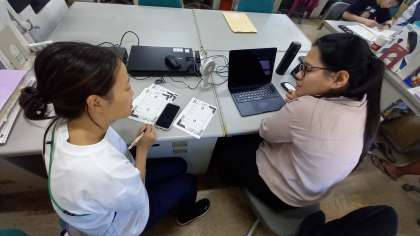 英語担当とC−NETが、授業の進め方について打合せしています。