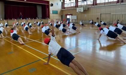 高学年は、運動会に向けて基本の動きの練習に取り組み始めています。