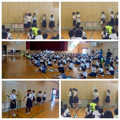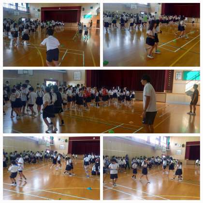 縦割り班で仲良く「紙テープリレー」を楽しみました(^-^)