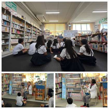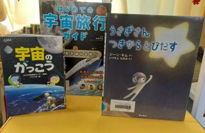 今日の読み聞かせは、ジーン・キム作・絵「うさぎさん つきからとびだす」です。