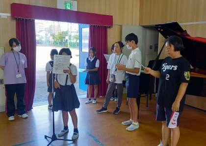 朝会前には、集会委員会の子ども達が司会の流れを確認していました。