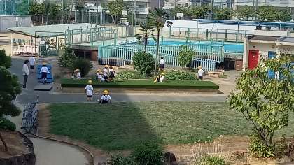 暑さ対策をして、元気に遊んでいます。