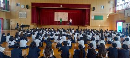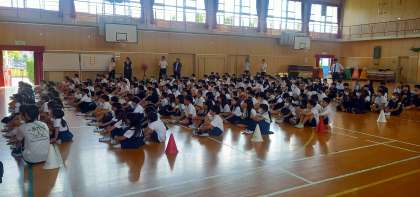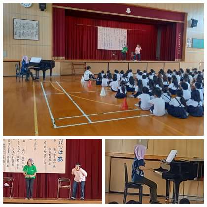 オペラと演劇の違いを教えてもらったり、こんにゃく座体操を一緒にしたりしました。