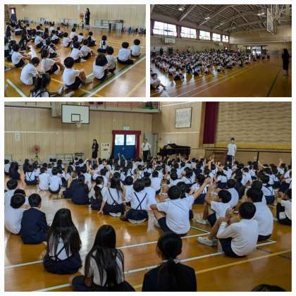 今日は、その記念すべき第一回「前期通知票授与式」でした。