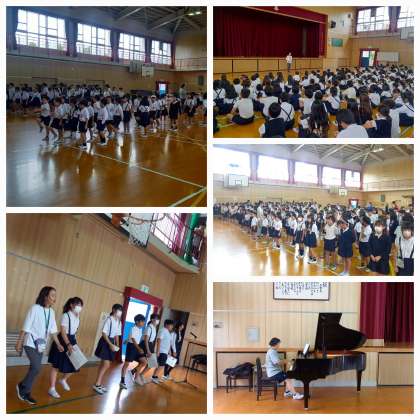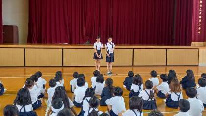 児童朝会で「運動会のめあて」の発表がありました。