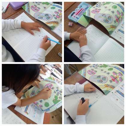 挿し絵から、かけ算の式で表せる場面を探しています。