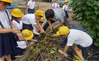2年生が育てている「さつまいも」の収穫まであと少しです。
