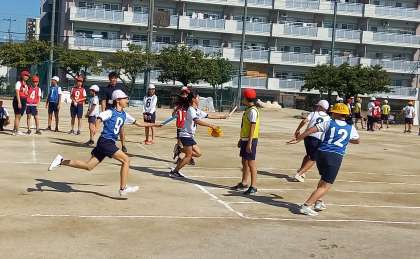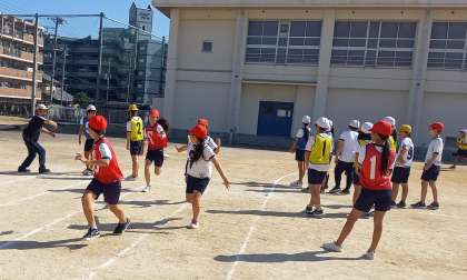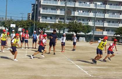 運動会に向けて、リレーのバトンパスの練習をしています。