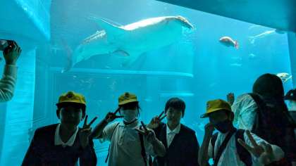 巨大水槽を見ていると、いつの間にか海の中にいる気分に・・・。