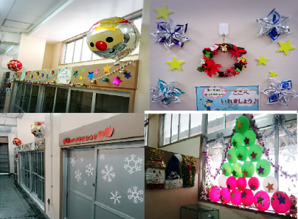 もうすぐ訪れる冬休みやクリスマス、正月を前に、子どもたちも少しうきうきした様子です。恒例になってきました給食室の飾りも、子どもたちの気持ちをさらに高めているようです。(^^)