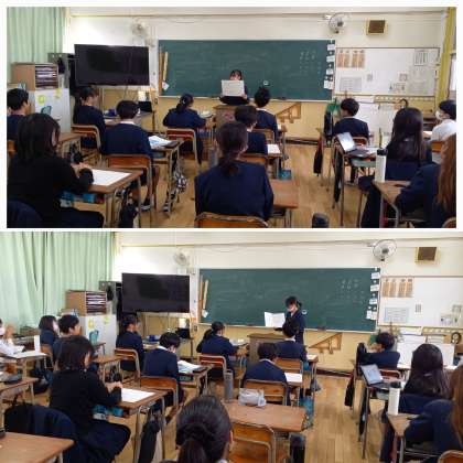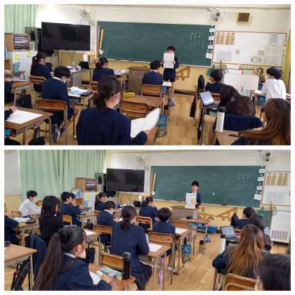 プラスチックごみを減らすための取り組みについて考え、発表しています。