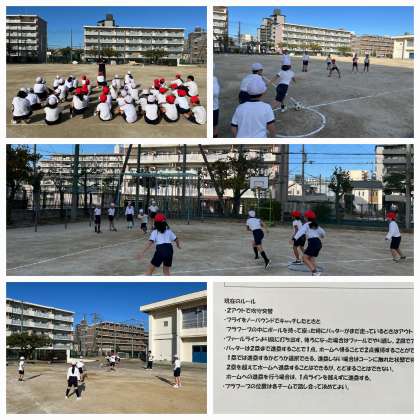 昨日は、フリスビーを使って「キックベース」のルールを確認した子ども達。