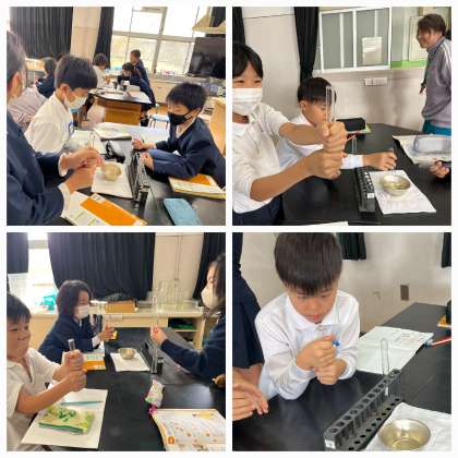 実験が理科室ということで、いつも以上に楽しみながら学習しています。