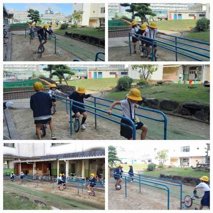 一輪車にすいすいのれるようになりたくて、毎日練習をがんばっています!