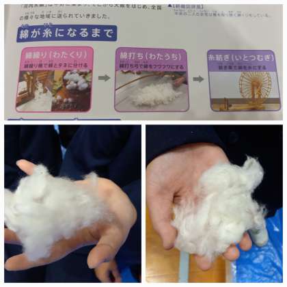 綿が糸になるまでの体験をさせていただきます。