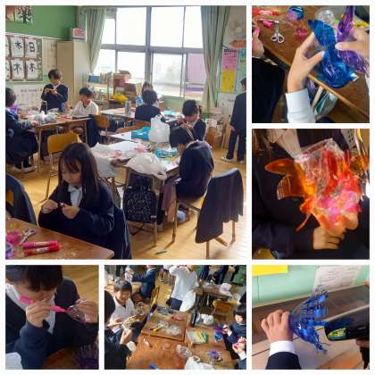 ペットボトルやたまごパックなどの空き容器を切ったり折ったり繋げたり。