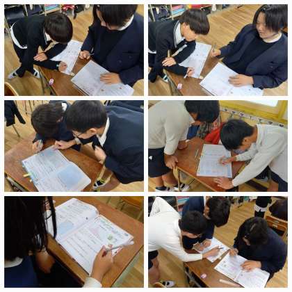 1人で考えるだけでなく、友だちと教え合いながら算数ドリルに取り組んでいます。
